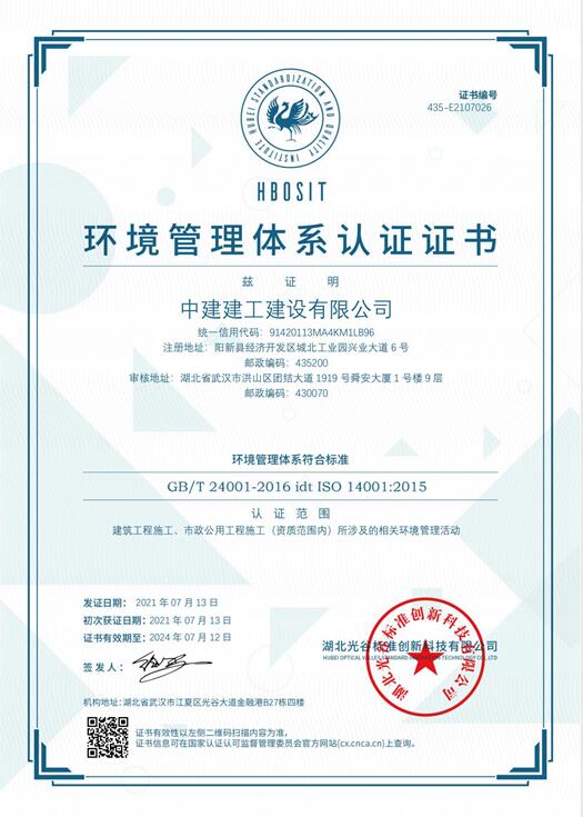 環境管理體系認證證書